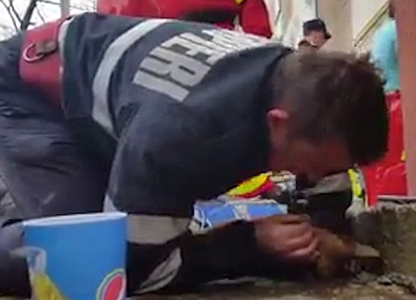 | 罗马尼亚消防员为宠物狗做人工呼吸 |
